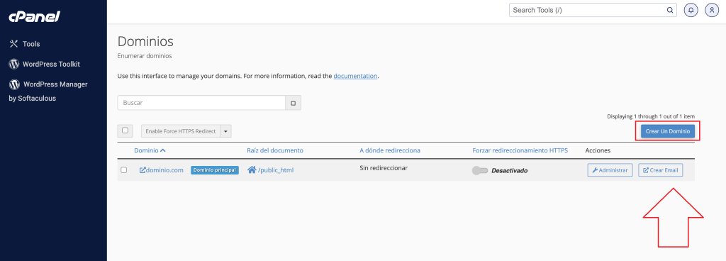 1_ Accede a tu panel de control cPanel y crea un subdominio (se recomienda, por ejemplo n8n.tudominio.com; donde «tudominio.com» es tu dominio genuino).