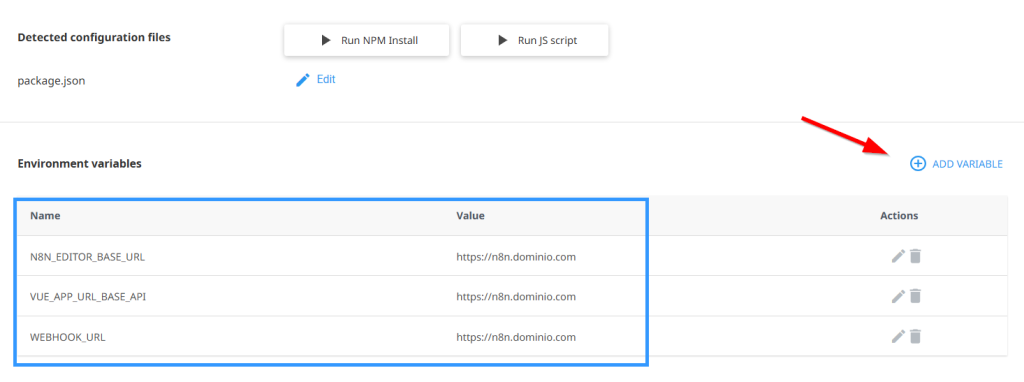 4_ Agrega estas 3 variables de entorno, adaptándolas al subdominio que estás usando: